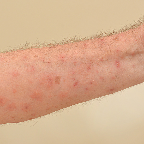 - Krankheitsbilder, die durch diese Parasiten am Menschen ausgelöst werden, sind unter dem Begriff Acariosen zusammengefasst. Dabei ist die Krätze die bekannteste Krankheit, die durch die Aktivitäten der Larve auf der Haut starken Juckreiz auslöst. Eine weitere häufige Erkrankung ist eine Form von Asthma, die nach jahrelanger Allergie gegen Hausstaubmilben auftreten kann. Der Hausstaub ist nicht der Auslöser von allergischen Reaktionen beim Menschen, wie fälschlicherweise angenommen wird, es sind die Exkremente der Milben.