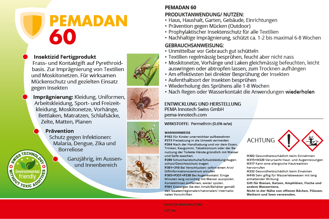 - Pemadan ist nicht für eine direkte Anwendung auf der menschlichen Haut zugelassen.